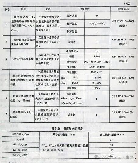 聚乙烯阀门的物理性能试验主要包括氧化诱导时间及熔体质量流动速率试验,试验要求、参数和方法见表3-18